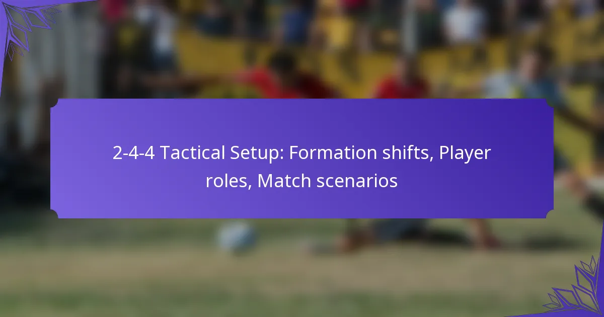 The 2-4-4 tactical setup in soccer is a dynamic formation that prioritises offensive play while maintaining a strong midfield presence. With two defenders, four midfielders, and four forwards, this arrangement allows teams to control the… 2-4-4 Tactical Setup: Formation shifts, Player roles, Match scenarios